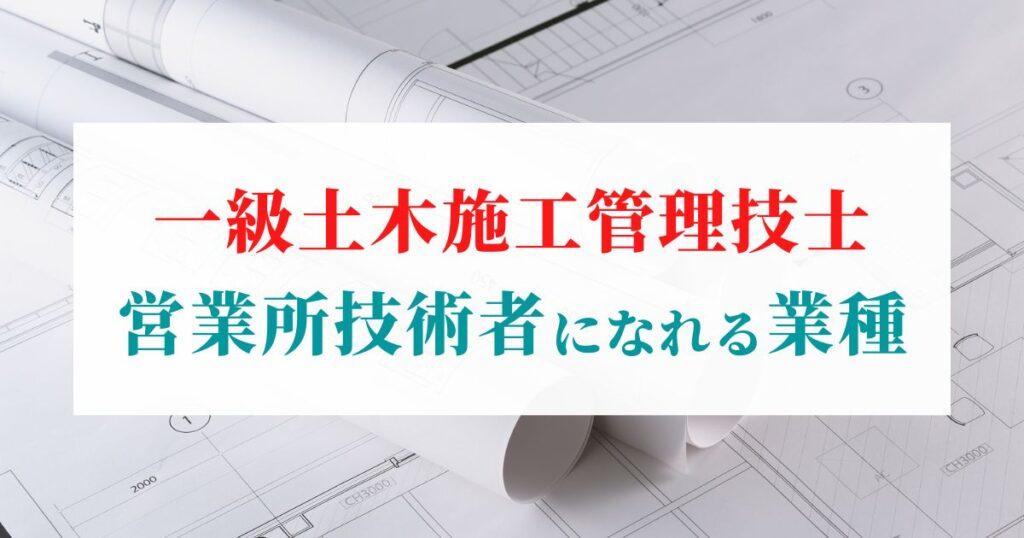 【建設業許可】一級土木施工管理技士で営業所技術者等(専技)になれる業種を解説!